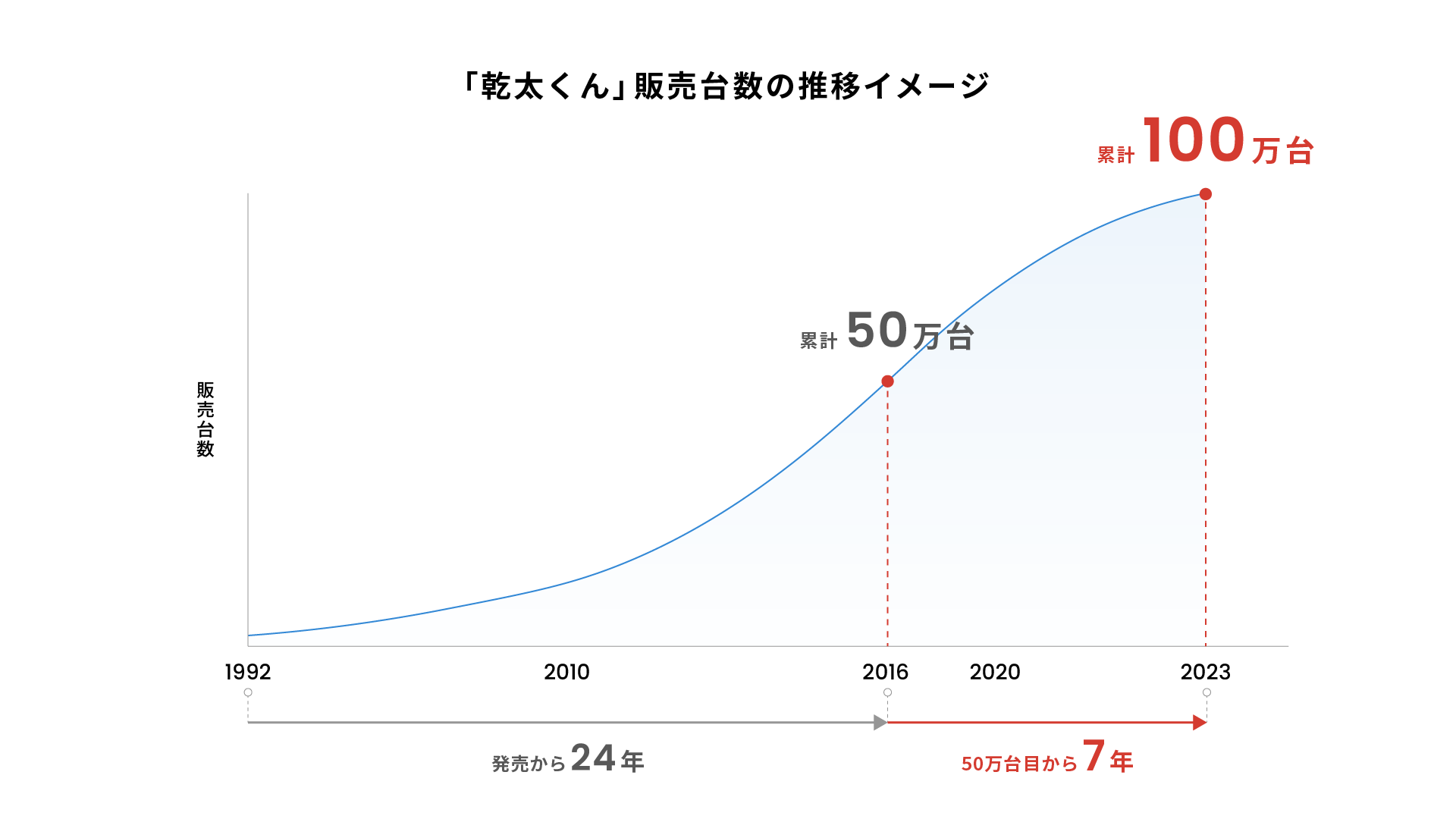 (ニュースリリース「ガス衣類乾燥機 乾太くん 累計販売台数100万台突破」 より)