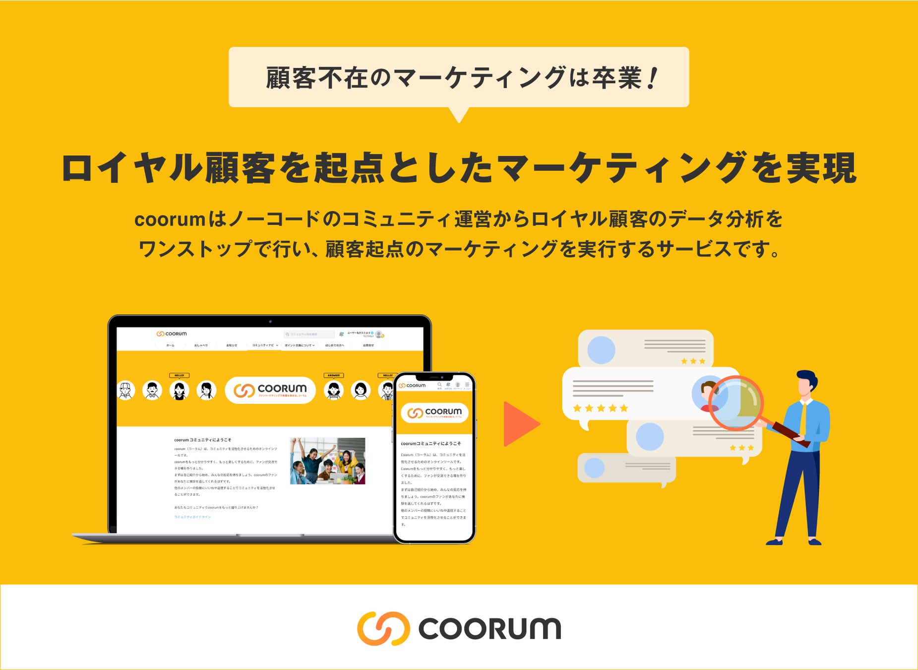 「coorum(コーラム)」は、コミュニティ運営から顧客分析までをワンストップで行い、ロイヤル顧客を起点としたマーケティング・事業戦略を実現するロイヤル顧客プラットフォームです。